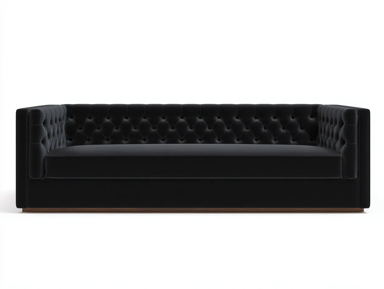 Die durchgehende Polsterung unterstützt einen komfortablen Sitz. Die charakteristische Knopfsteppung sorgt für eine markante Optik und eine klare Linienführung.