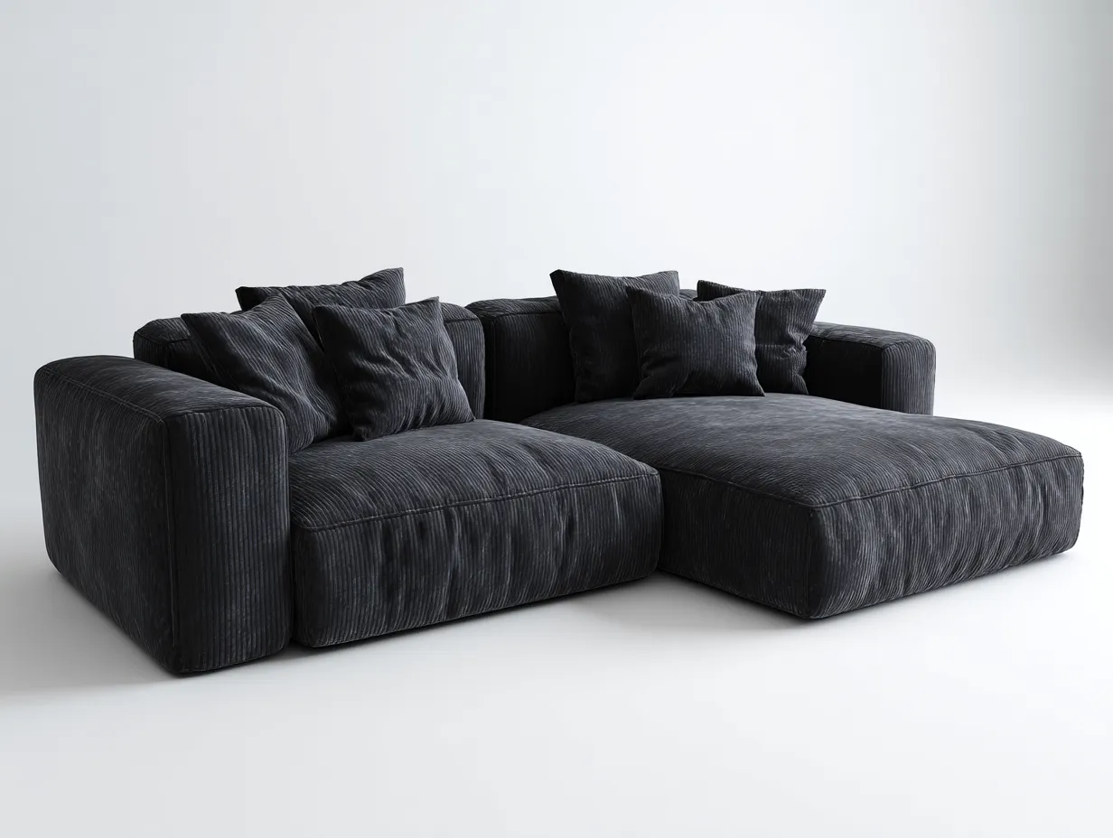 Dieses Ecksofa ist für den Einsatz im Wohnzimmer konzipiert und bietet eine großzügige Sitz- und Liegefläche. Die klare Linienführung und das bodennahe Design unterstützen eine ruhige und moderne Raumwirkung.