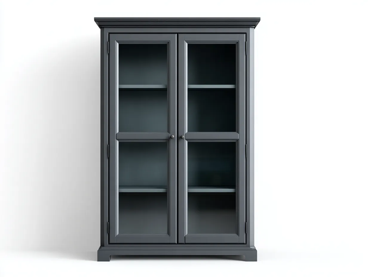 Gefertigt aus Holz und Glas in dunkelgrauer Farbgebung. Die Oberflächen sind gleichmäßig verarbeitet und für den täglichen Gebrauch im Innenbereich geeignet.
